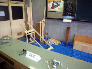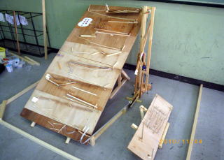 ![]() 物理講義室の後ろのスペースを使って、製作に 取りかかっています。10月から本格的な作業に 入る予定です。 直径12mmの鉄球が30度の斜面を転がります。 今年はどんな業を披露してくれるのでしょうか。 (あるいは企画倒れになるのか・・・) |