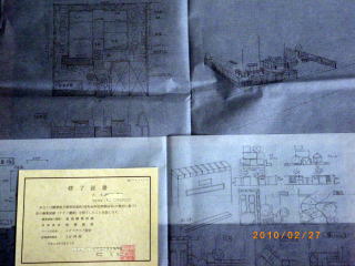 あるじが描いた図面です。 左下は修了証書です。 講習の最後に修了証書授与式というのがあって、 学校長から一人一人手渡しで修了証書をいただ きました。 |