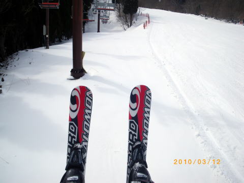 今日(12日)は天気が良かったので、仕事は一休み。 そして・・・ また、スキー場に来てしまいました。 リフト数本分滑った後、深雪にTRY・・・ おっ、なかなか調子がいいではないか。 楽勝、楽勝 ( ! ) その後、圧雪されたコースを滑りまくる・・・ さて、1日券分の元は取ったし、最後にもう一度深 雪を滑って帰るとするか・・・(これが間違いでした) |