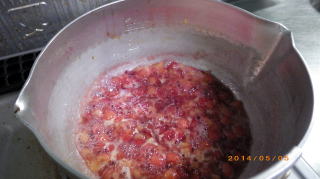 軸とタネを取ったものにグラニュー糖を加えて煮込みます。