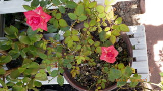 桃薫ジャムもよさげですな(^^)ピンクのミニバラに続き、赤色も咲きました。華やかです。