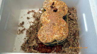 ミズゴケを敷いた発泡スチロールの容器に入れ