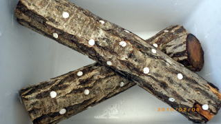 桜の木になめこ菌を植え付けたものを12月に購入。