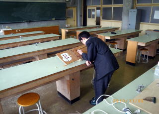 ![]() 物理講義室の後ろのスペースを使って、製作に 取りかかっています。10月から本格的な作業に 入る予定です。 直径12mmの鉄球が30度の斜面を転がります。 今年はどんな業を披露してくれるのでしょうか。 (あるいは企画倒れになるのか・・・) |