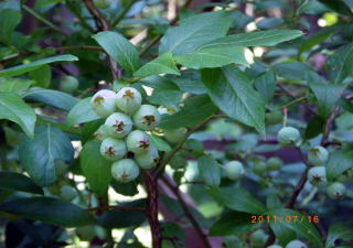 ブルーベリーも豊作です。 昨年はヒヨドリにほとんど 食べられました。 今年はちゃんとネットを かけることにしました。 |
