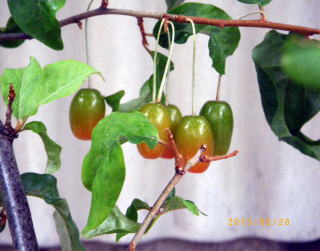 鉢植えのビックリグミが色付いてきました。 2回のジベレリン処理によって数十個の実がなりました(^_^) |