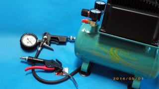 付属品は無かったので、エアーホース(ピンク)、エアチャックガン(タイヤに空気を入れるヤツ) 、エアーダスター(埃をエアでシューと吹き飛ばすヤツ)も同時に購入しました。