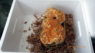 ミズゴケを敷いた発泡スチロールの容器に入れ