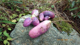 何年かぶりにアケビが生っていました(◎_◎;) 敷地内の赤松林で松茸を探していたところ、 アケビを発見 !! 大小合わせて7個収穫です。 実はそのまま食し、皮は、あく抜きの後、 天ぷらにしようかと思っています(^^) では、また・・・ <(_ _)> もどる